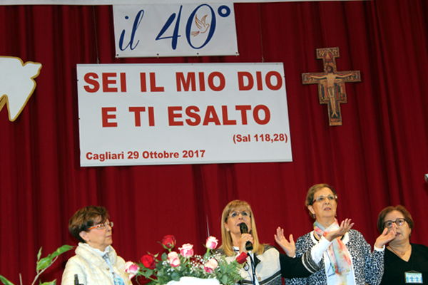 In occasione del 40° Anniversario di fondazione, Domenica 29 Ottobre 2017 la nostra Comunità, insieme ai gruppi aderenti, si è radunata in Convegno. La giornata Comunitaria di lode, formazione ed evangelizzazione ha avuto come tema “Sei il mio Dio e Ti esalto” (Sal 118,28). E’ stata una giornata di festa, di gioia e di commozione sin dall’arrivo dei partecipanti, giunti da più parti della Sardegna con l’ardore spirituale di benedire il Signore per le meraviglie che ha compiuto in quarant’anni di “storia sacra”. La corale, con i suoi canti di gioia e di accoglienza, ha consentito ai presenti di elevare all’unisono una fervida e festosa lode al Signore scaturita, poi, in un armonioso canto in lingue, durante il quale la terra sembrava accostarsi al Cielo per ammirare e contemplare più da vicino la grandezza e la maestà di Dio.